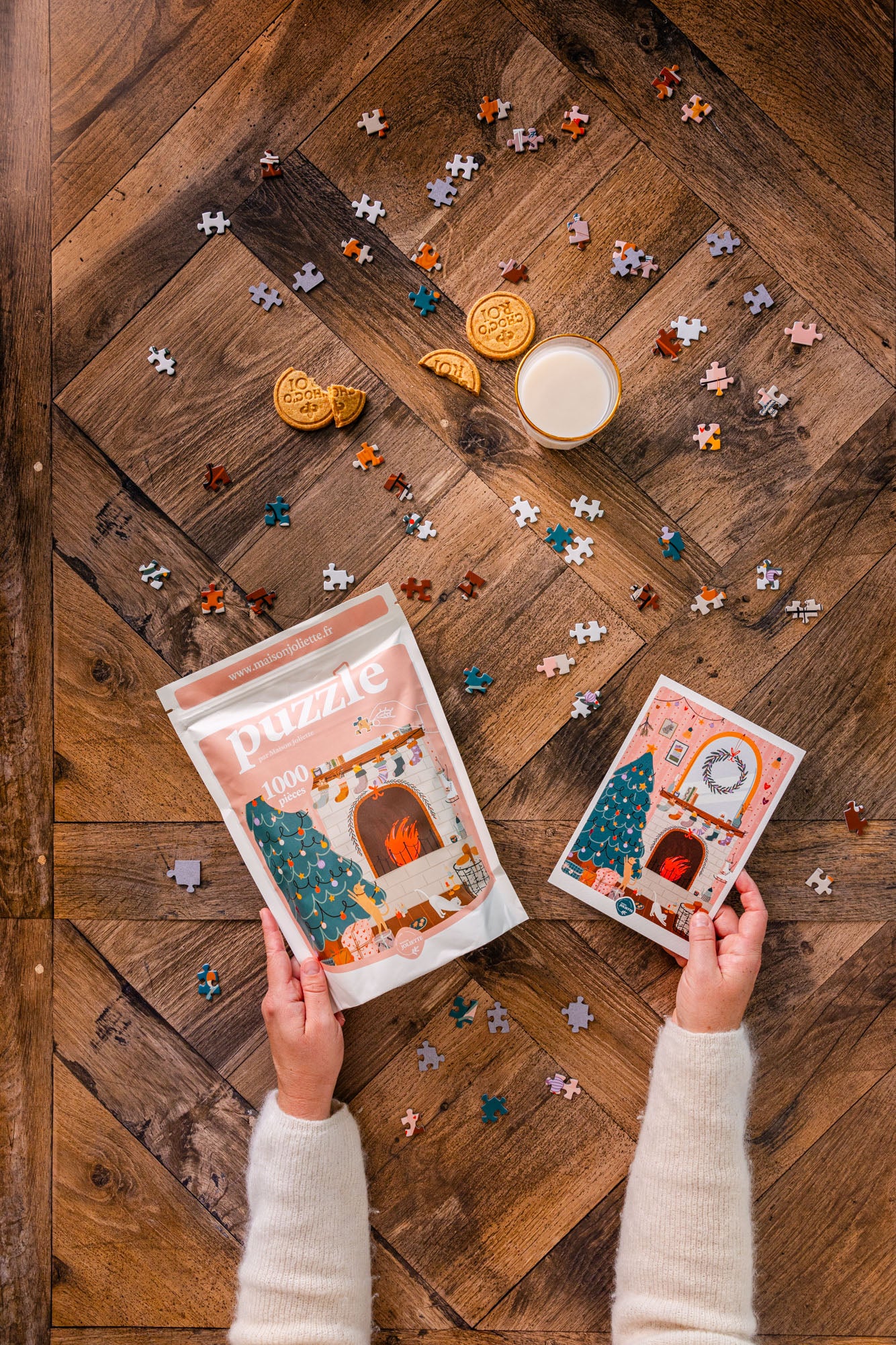 Plongez dans l’ambiance chaleureuse d’un après-midi d’hiver avec le puzzle Au coin du feu signé Maison Joliette. Entre tasse de thé fumante, feu crépitant et douce lumière, cette illustration poétique évoque le cocooning à la française. Un puzzle à la fois apaisant et élégant, idéal pour se détendre ou offrir à un amateur de belles illustrations.
