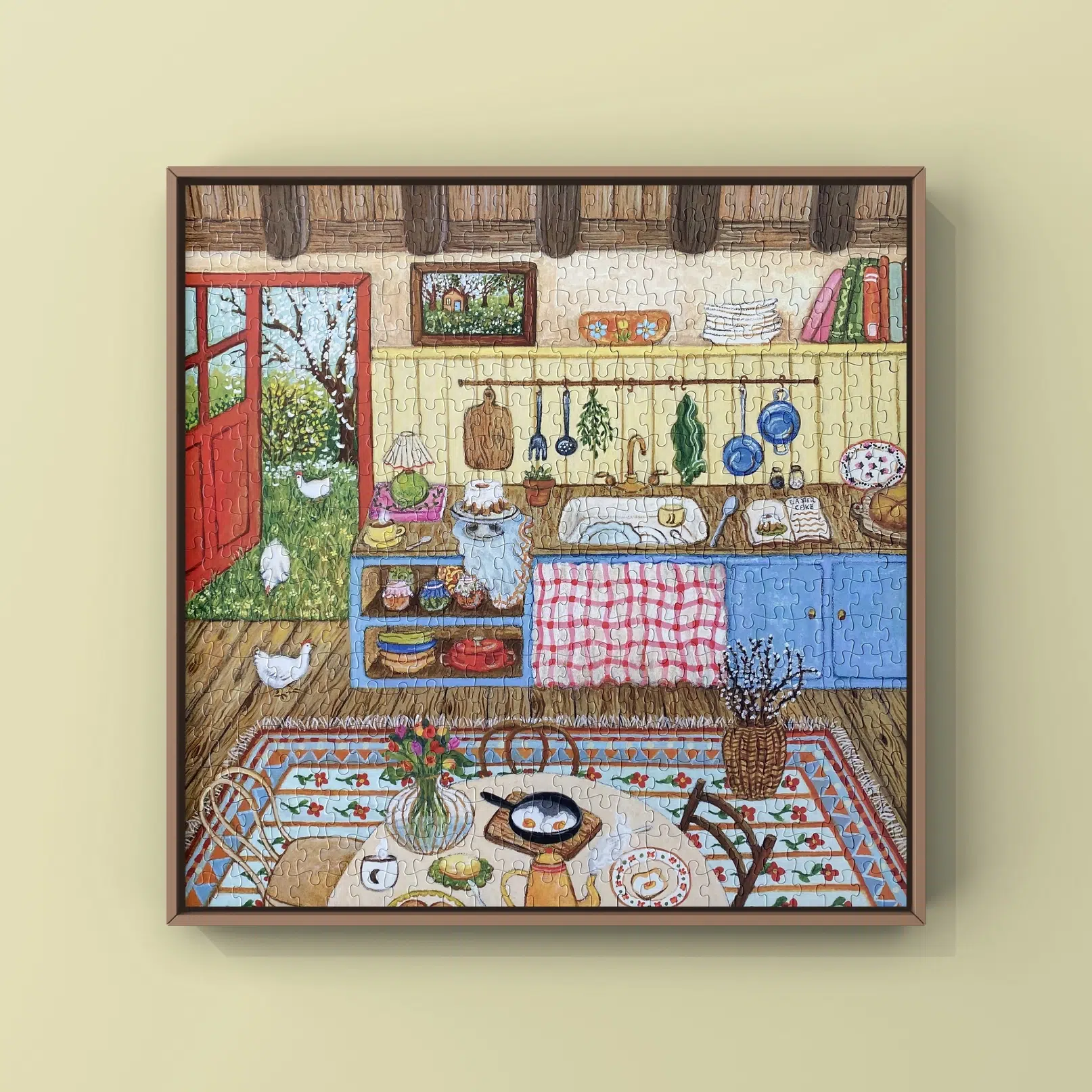 -10% en rejoignant le club!Plongez dans l’atmosphère douce et réconfortante d’une cuisine de cottage pleine de charme. Cottage Kitchen séduit par ses couleurs apaisantes, ses personnages délicats et son ambiance chaleureuse, parfaite pour un moment de détente. Illustré par Asia Spettel, dont le style évoque la douceur, le soin et la sérénité, ce puzzle est une véritable pause bien-être… avec en prime un engagement fort pour la planète