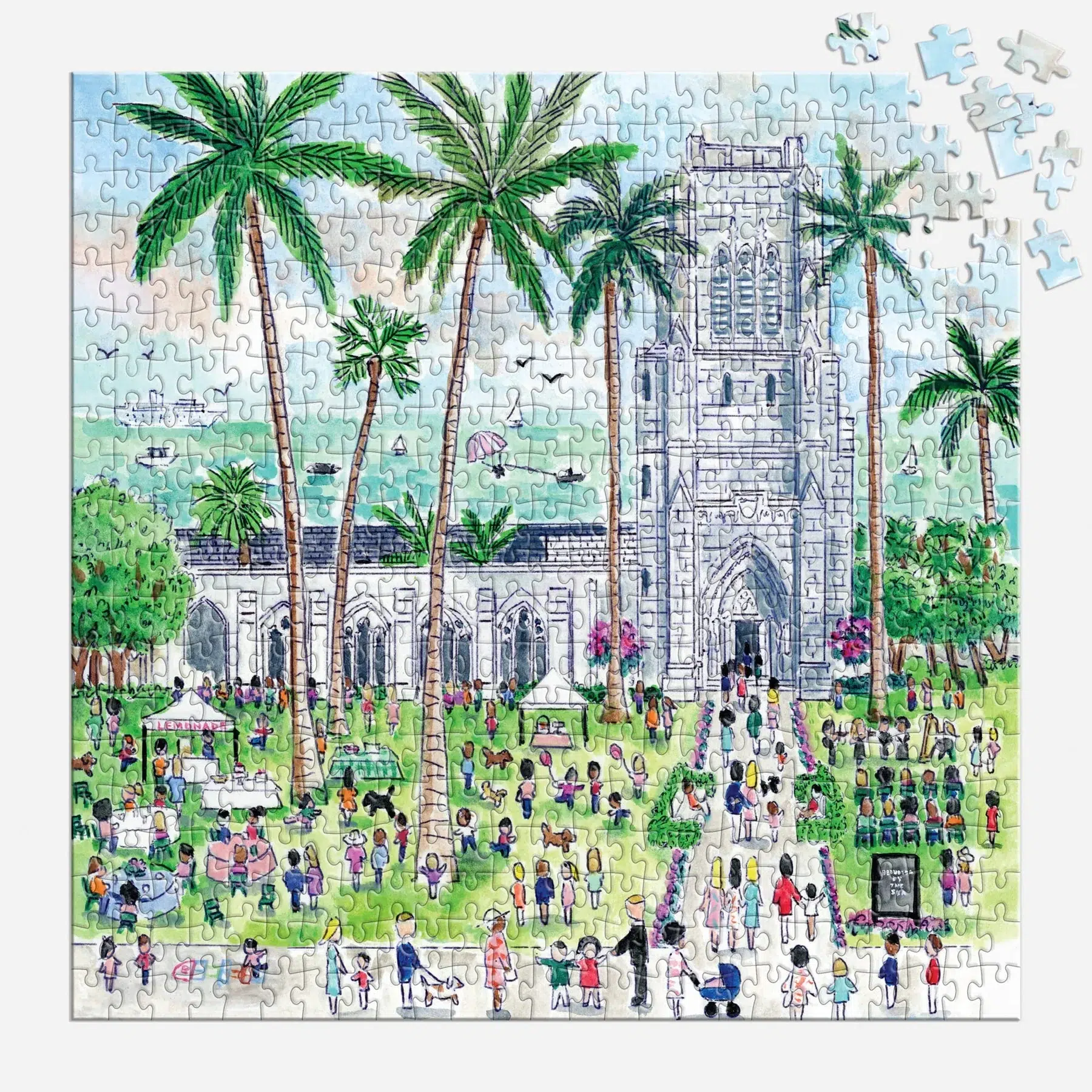 Découvrez une illustration élégante et lumineuse mettant en scène Bethesda by the Sea, monument emblématique de Palm Beach, capturé avec finesse par Michael Storrings. Son style illustratif reconnaissable sublime les détails architecturaux et les couleurs vibrantes de ce lieu iconique. Ce puzzle offre un moment de détente immersif et stimulant, idéal pour les amateurs de puzzles exigeants comme pour les passionnés d’art et de patrimoine américain. Une belle invitation à la contemplation, pièce après pièce.